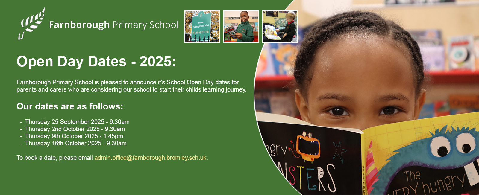 We are a welcoming school providing a family atmosphere in a community where every chiId is known as an individual. Our parents and staff work together to play a central role in helping us to achieve the best possible outcomes for every chiId. The vision at Farnborough is for our children to become independent, confident learners who strive to reach their full potential and develop a life-long love of learning.